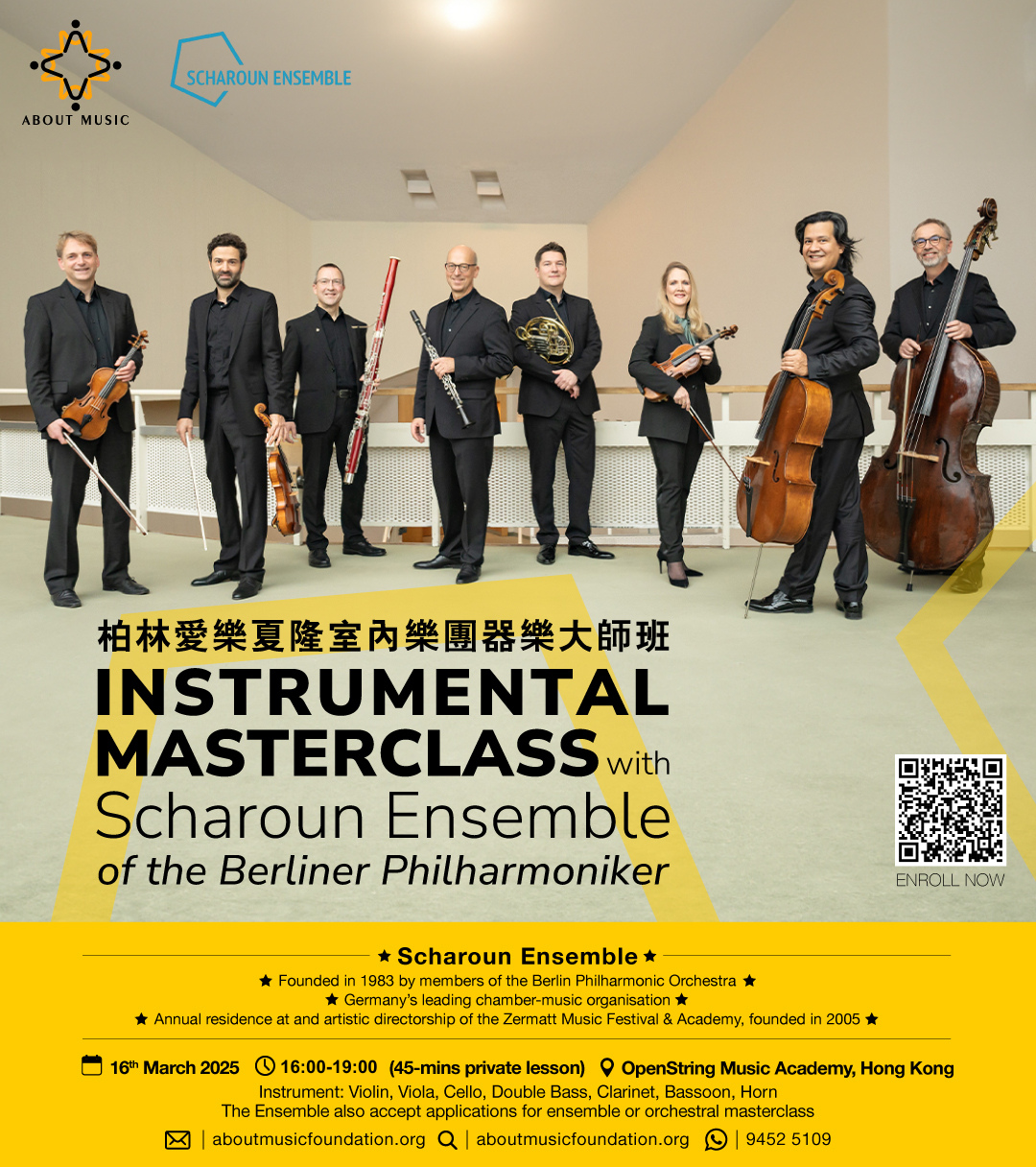 以創新的節目編排、精緻的音樂文化和生動的演繹為標誌的柏林愛樂夏隆室內樂團即將來港舉行大師班,是次大師班包括小提琴、中提琴、大提琴、低音大提琴、單簧管、巴松管及法國號等不同樂器,不容錯過!