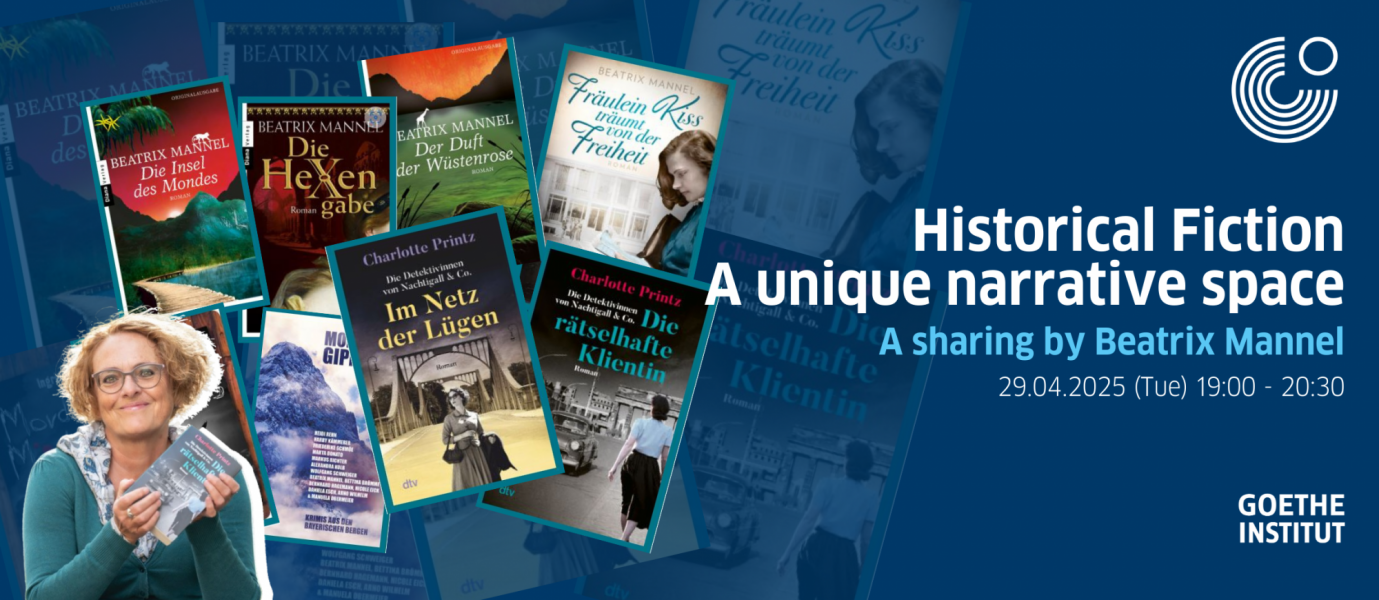 正是這種結合虛構情節與真實歷史的特色,令歷史小說變成一種極富趣味的文字創作空間。在4月29日晚,我們請來德國作家Beatrix Mannel跟大家分享自己的創作心得。Beatrix Mannel以不同筆名出版過多本歷史偵探小說,當中最出名的包括用上Charlotte Printz筆名寫成,以二次大戰後東西德分裂時期為背景的偵探小說系列IM NETZ DER LÜGEN與DIE RÄTSELHAFTE KLIENTIN。