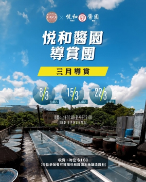 是次導賞團聯乘本地老字號悅和醬園,更加邀請到醬園第三代接班人Jack帶大家遊覽本地醬園,介紹傳統生曬醬料的工序和了解本地醬園發展史。悦和醬園更為每位參加者送出本地釀造醬料,希望各位支持本地製造。