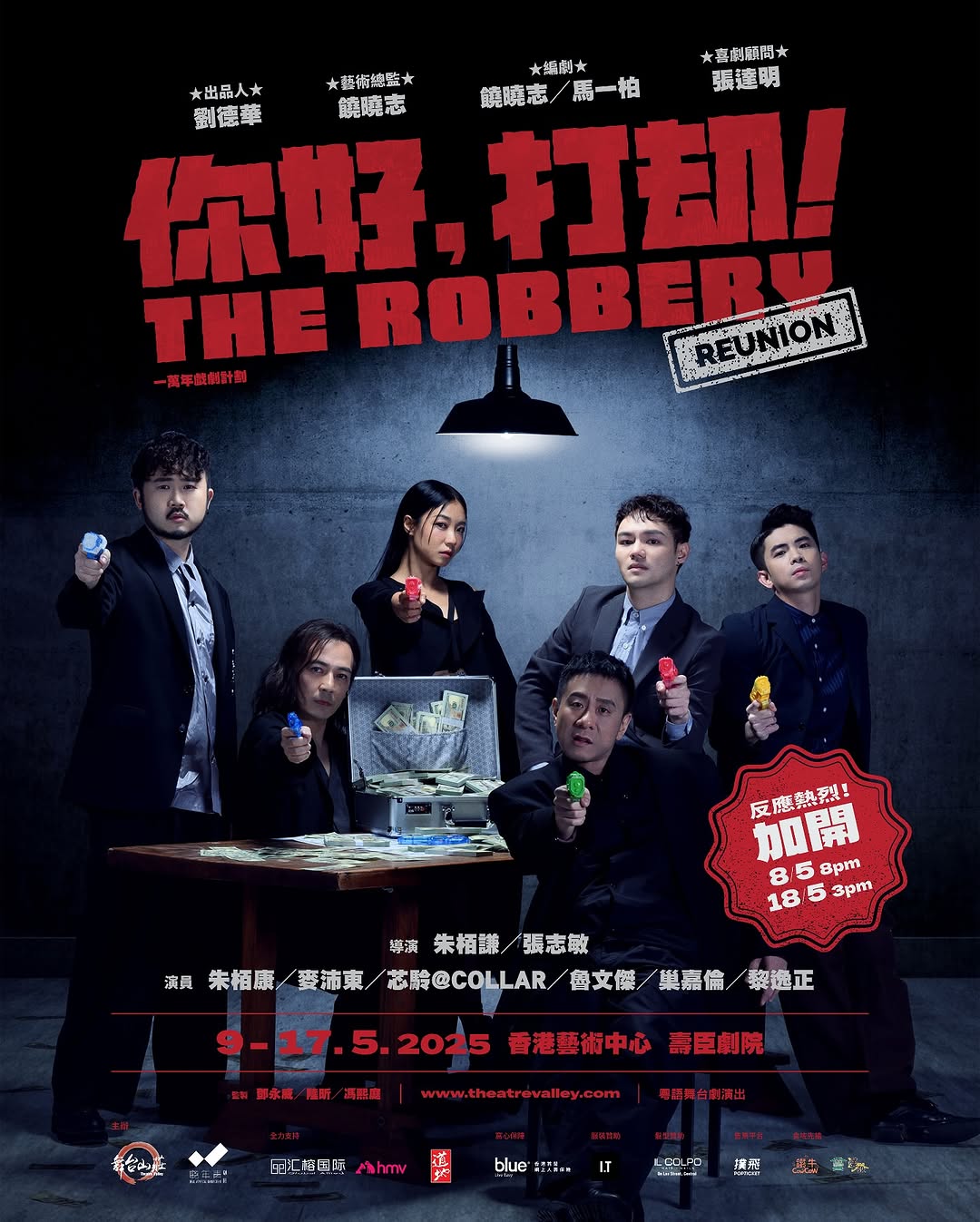 去年~~舞台劇《你好,打劫!》首次演出,全場爆滿!今年~~《你好,打劫!Reunion》捲土重來【故事大綱】實習劫匪打劫銀行卻挾持了非一般人質。為了逃脫,劫匪變人質,而人質反操控大局。在櫃枱前上演一場荒誕爆笑攻防戰。