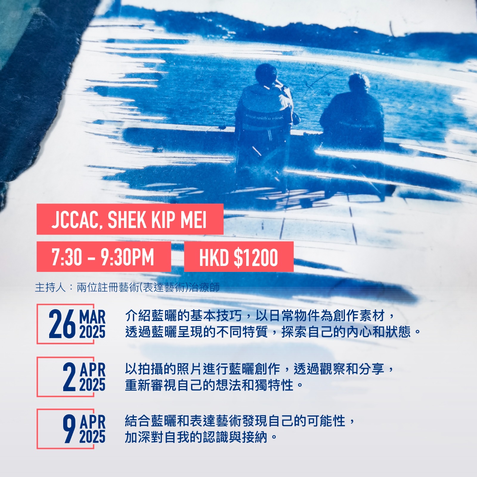 透過工作坊,我們將學習從藍曬 (Cyanotype) 藝術創作梳理想法和表達感受,有助我們自我覺察,加深對自己嘅認識,發現和相信新的可能性。