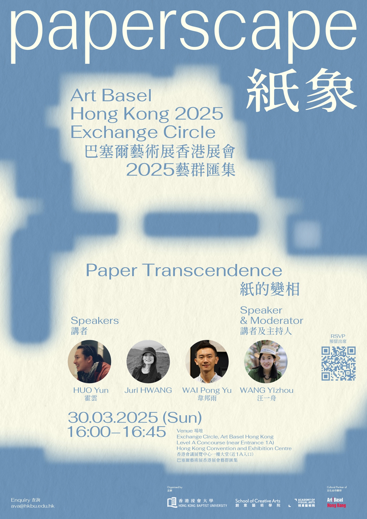 此次對談是香港浸會大學主辦的巴塞爾藝術展香港展會2025 — 平行展覽「紙象」之相關文化活動。