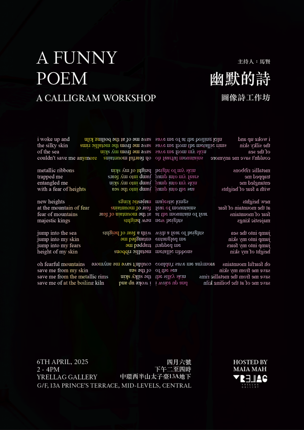 透過 Maia Mah 在工作坊中的分享,我們邀請你深入圖象詩的世界。使用你最意想不到的材料進行實驗,創造您自己的視覺詩歌,您準備好通過圖象詩探索你對現實的視點了嗎?