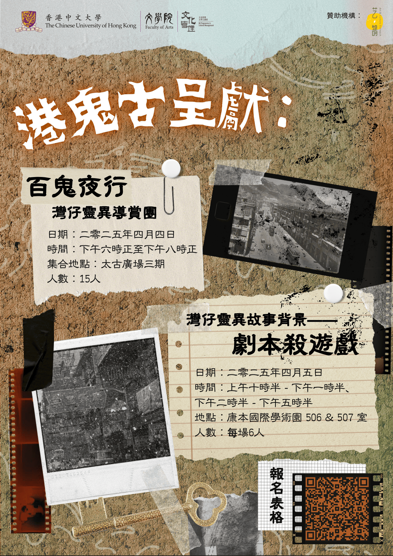 *「活動二:劇本殺遊戲——灣仔靈異故事背景」因人數所限,將於同一天不同時段舉辦兩場內容相同的活動,參與者只需參與其中一場。