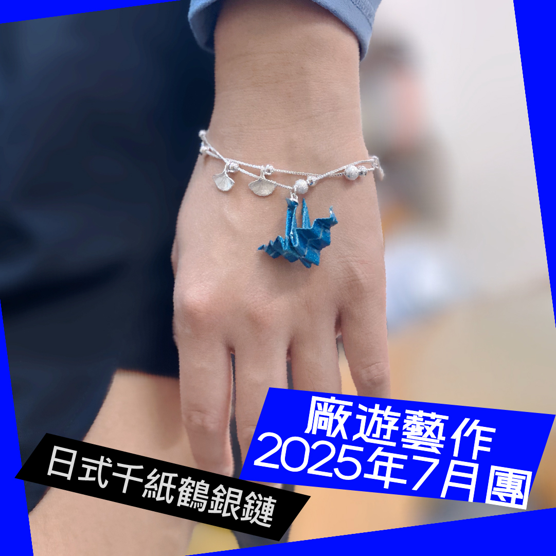 日本古老傳說中,任何人只要摺一千個紙鶴,可以授予一個願望,如祈求老人長壽或病人從疾病復元。紙鶴表達的是一種對人的祝福,也成了和平的象徵。啟發自日本文化及藝術家小野川直樹(Naoki Onogawa)的作品,參加者將學習以UV膠將帶有日式風的紙鶴加入首飾中,給佩戴者記念與祝福。