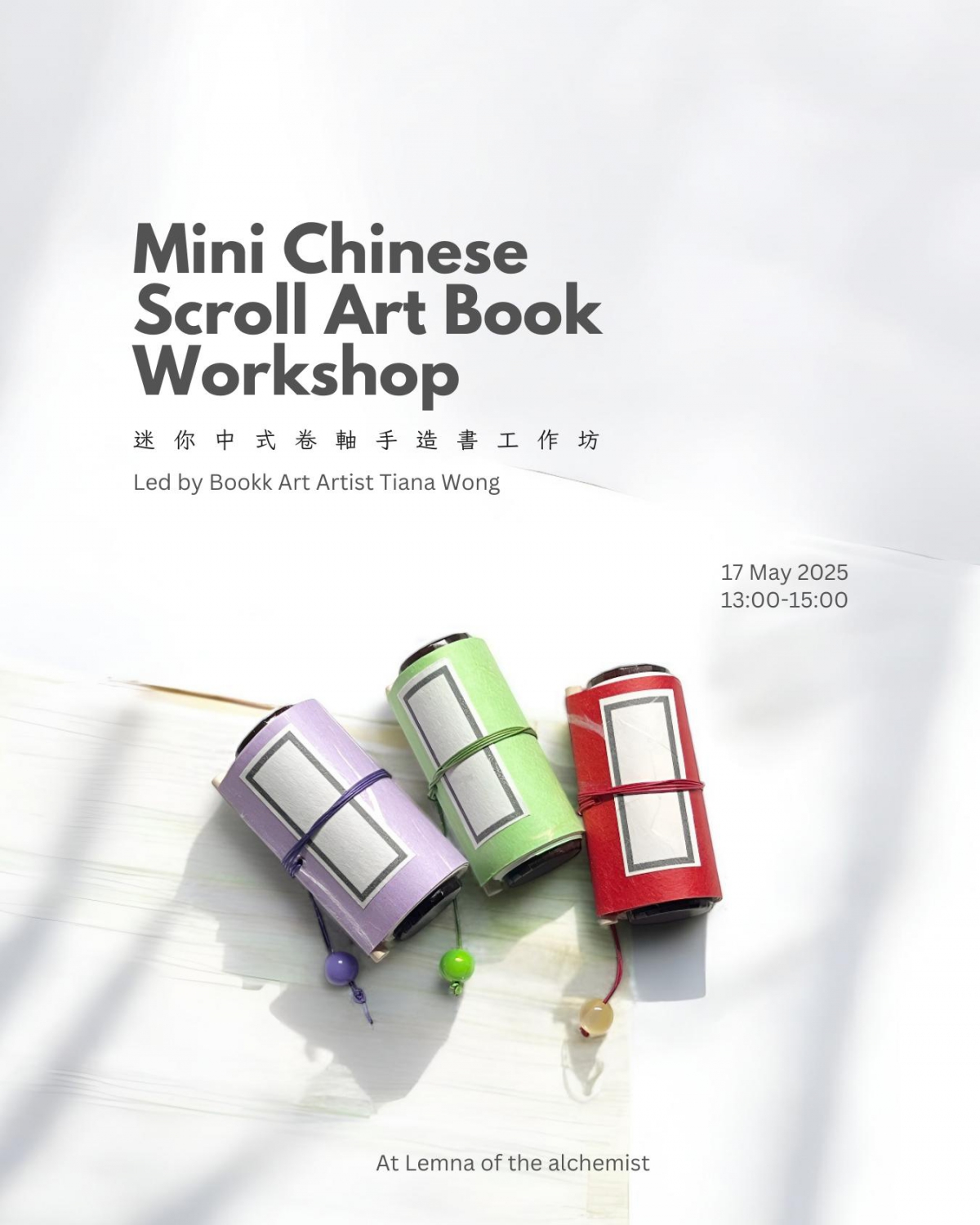 卷軸是中國近乎最早的一種裝幀方法,內容可書可畫,工作坊會以深入淺出的方法教授參加者製作自己的小卷軸,並會簡介東方書籍的知識和歷史,及傳統裝幀的技巧。