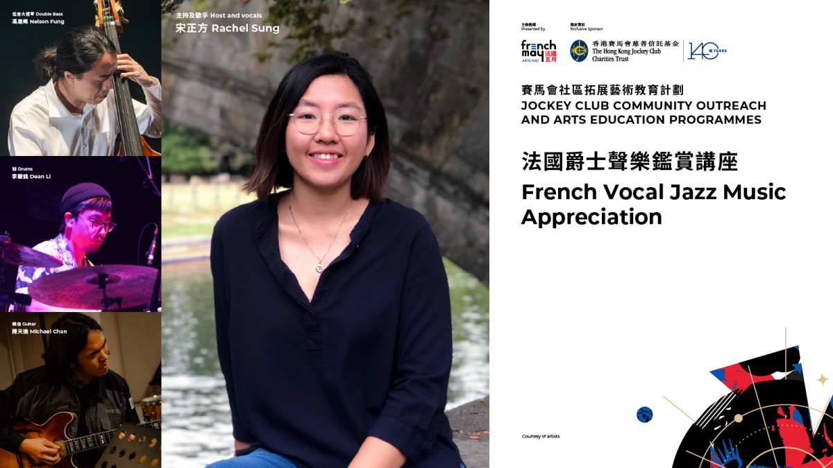 講座由本地爵士歌手宋正方(Rachel Sung)主持,探索40至60年代法國香頌音樂的黃金時代,呈現如Édith Piaf和Charles Trenet等標誌性藝術家的作品。內容從法國聲樂音樂及其與爵士樂的聯繫開始,探討法國香頌和美國搖擺爵士之間的關係,審視兩種風格如何相互影響。除了進一步了解節奏、句式和敘事手法以提升對這些音樂類型的理解和鑑賞能力,觀眾亦將於活動現場欣賞到由爵士樂隊演繹《玫瑰人生》和《大海》等經典法國聲樂爵士作品。