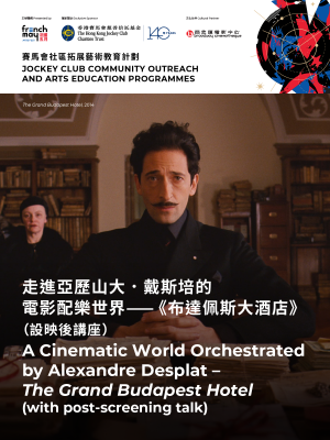 韋斯安德遜鬼才執導人氣之作,第64屆柏林影展評審團大獎,榮獲奧斯卡四大獎項。17位包括賴夫費恩斯、祖迪羅、蒂達史雲頓、奧雲韋遜、標梅利、艾哲倫保迪等國際巨星,貫穿三個浮華世紀。大酒店「皇牌服務生」Gustave完美主義向來吹毛求疵,對服務態度自有一套嚴格原則。新仔「Bell Boy」跟他做學徒,二人亦師亦友共同進退。外面世界固然立立亂,但精緻酒店內也不遑多讓,每日貴客來來往往煩事多。然而當一名老寡婦房客Madame D離奇被殺後,酒店頓時成了警察緝兇、親生仔爭家產的是非之地。一切一切均衝著Gustave而來,Madame D留下的名畫又不翼而飛,大酒店多事之秋點收科?放映結束後將於戲院中設講座,與你細談亞歷山大.戴斯培的配樂如何精妙地結合影像,成就又一電影經典。