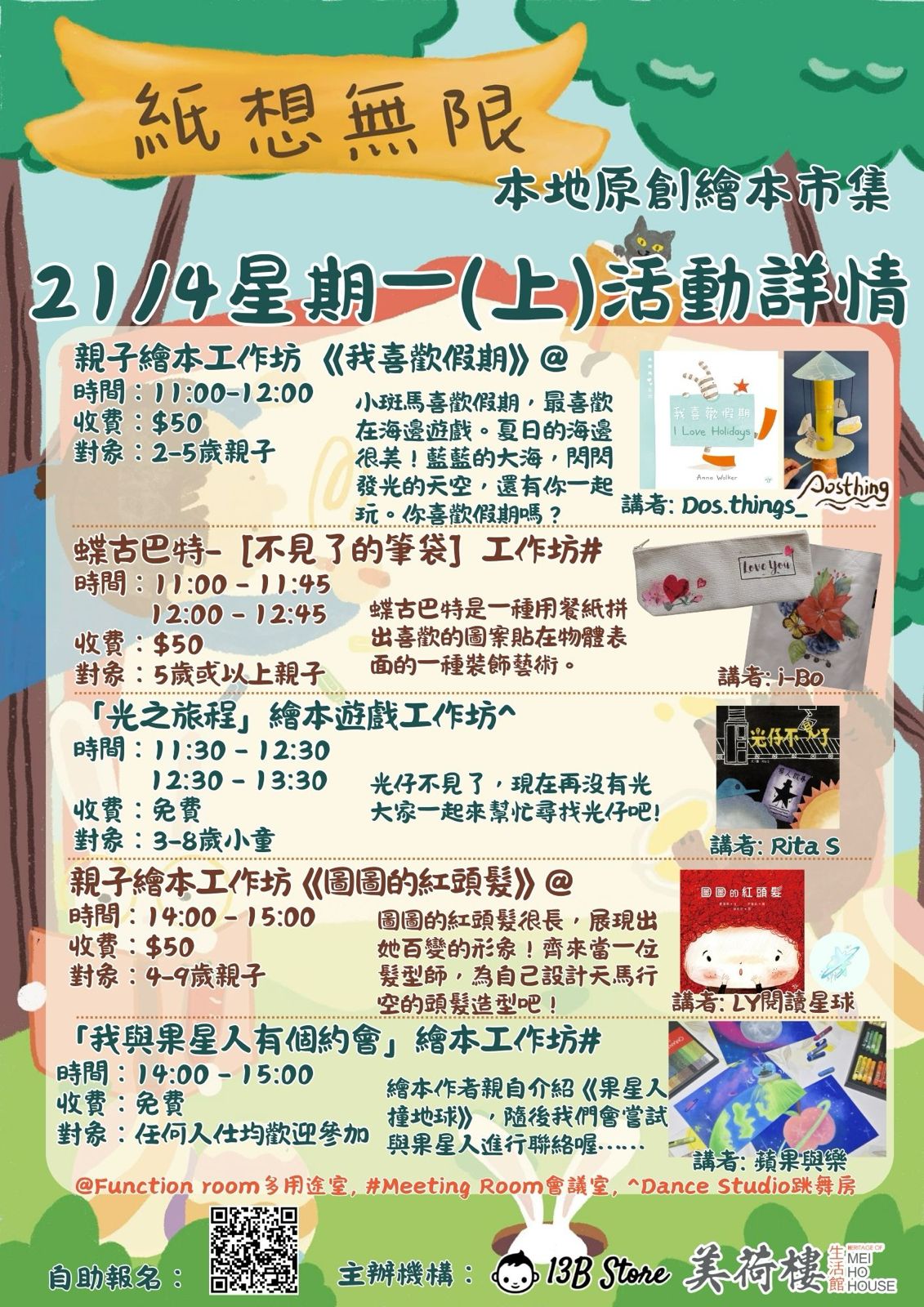 作為「紙想無限 - 本地原創繪本展」的延伸活動,這次市集將帶領您進入繪本的奇幻世界,探索本地繪本家的想像與創作靈感。無論是家長、孩子,還是繪本愛好者,都能在這裡找到屬於自己的心靈共鳴,與創作者們一同發掘繪本的無盡可能。