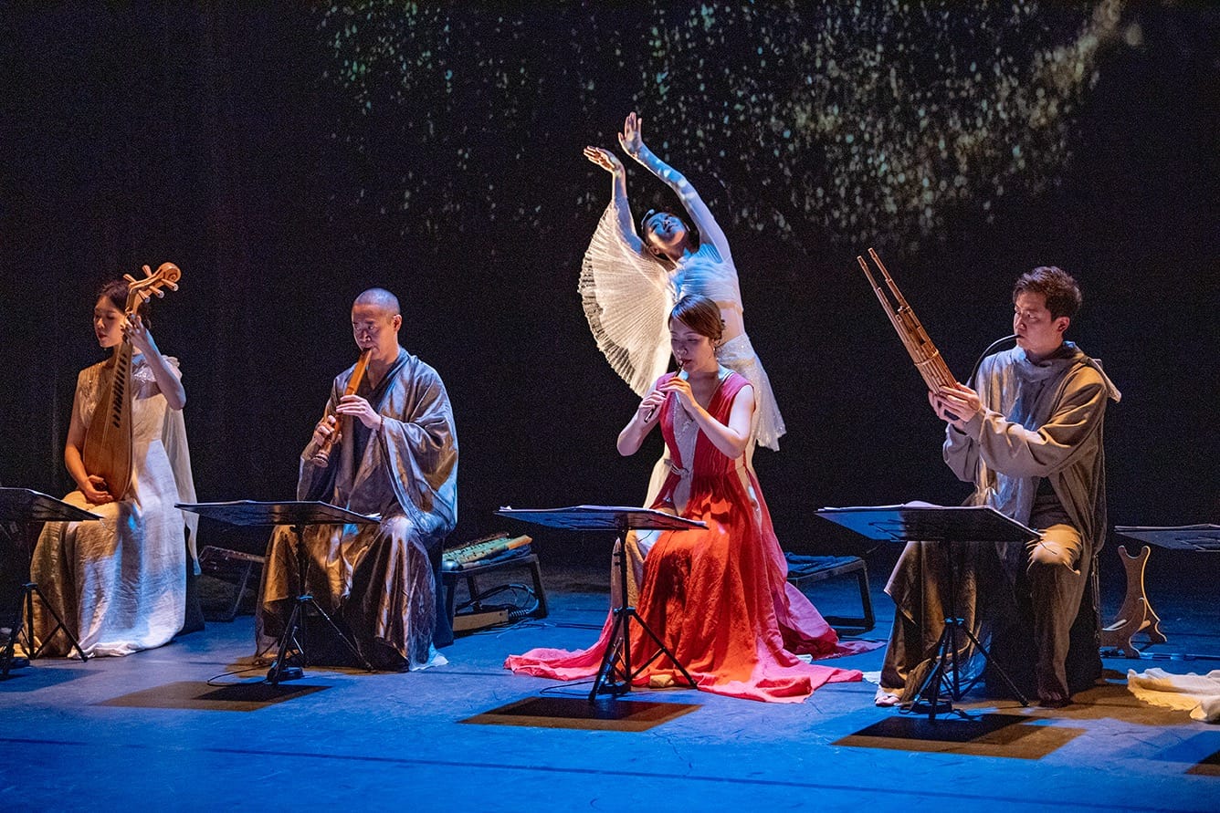 譚盾歷時數年,研讀遺留海外的敦煌古譜手稿,又從壁畫中復原、製作多件唐代古樂器。是次節目,譚盾將攜自己創立的敦煌古樂團,以古樂舞、人聲和迷你歌劇,沉浸式、穿越式地在舞台上重現《消失的藏經洞》。在去年巴黎首演的基礎上,又特別加入了唐代古樂《大採茶與小採茶》的初次演出。