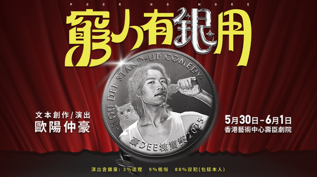 豪Dee 棟篤笑2025歐陽仲豪《窮人有銀用》 (Poor No More)大膽切入因「窮」而遭遇的不幸,加入岸久角度,再透過喜劇攪拌成一杯回甘快樂的香蕉朱古力。Show含銀量:3%道理,9%低俗,88%冒犯(包括本人)