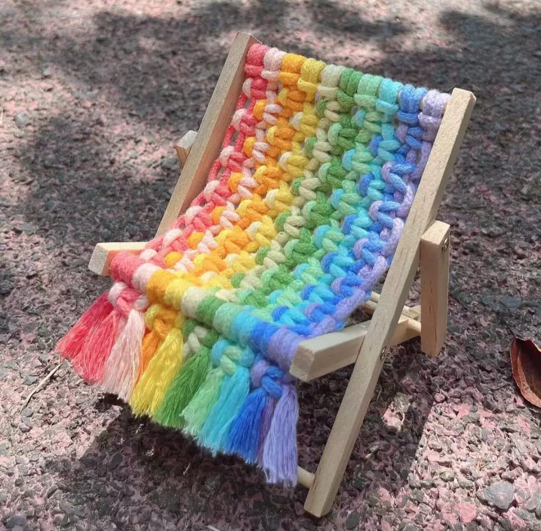 自己親手編織七色彩虹椅,造成 一件可愛的小型傢俬,用來安放你的私人手機。