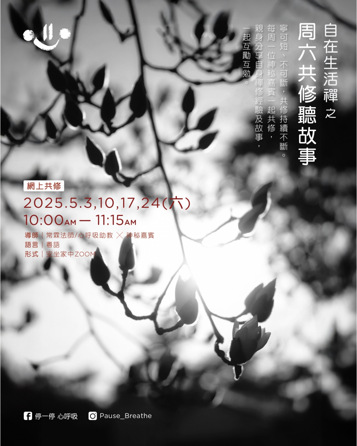 「自在生活禪」之《周六共修聽故事》網上共修(5月)停一停 心呼吸