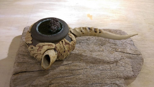 一同在拉坯作品中加入紋飾以豐富坯體,將生活中發現的物件壓在坯體成為獨特的紋飾。