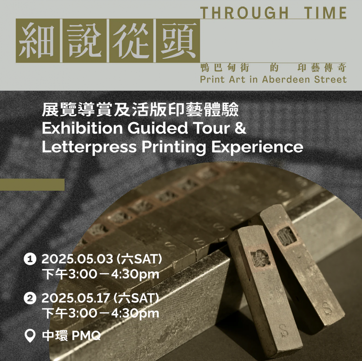 在這次導覽中,參加者將一覽「細說從頭——鴨巴甸街的印藝傳奇」的重點展品,比如香港製造的珍貴字模,並深入了解展區內容,認識香港字排印西學著作、民生書籍的悠遠歷史,更有機會試用手搖活版印刷機,印製精美紀念卡。