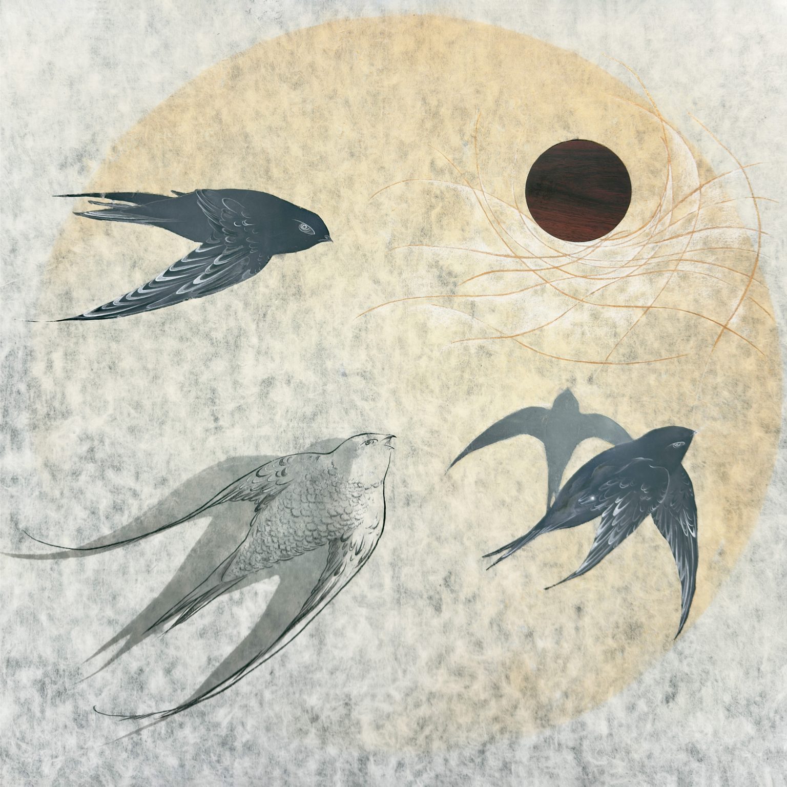 Rina He's practice integrates modern ink paintings with mixed media creations. For this exhibition, she has chosen various organisms as her subjects. By capturing their forms of life and unique habits, she reflects on the cyclical nature of life and the ideology of existentialism.