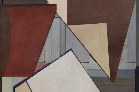In Daybreak, a new series by Natalia Załuska, her distinctive abstraction-based language remains unmistakable. Geometric forms continue to serve as key points of reference, engaging in a dialogue with abstract avant-garde traditions, evoking the rhythmic compositions of Maria Jarema, the sculptural-architectural investigations of Alina Ślesińska, and the works on paper or monument studies by Magdalena Więcek. In comparison to her earlier works, Załuska's latest series invites us to consider subtle shifts in her approach. These pieces feel more nuanced, each emerging as an autonomous composition that suggests its own narrative. One might notice patches of dark colour lingering in the background or fading away, as though something were hiding just beneath the surface. Are they emerging from a different order, or perhaps even a different temporality?