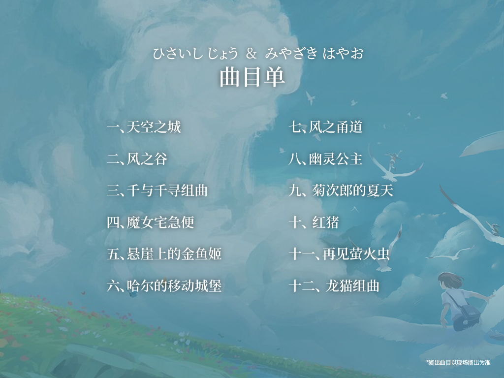 這場音樂會以《天空之城》為線,為你帶來非凡而別緻的樂趣,細細聆聽,和龍貓一起做一個可愛的人!這次,讓我們重新去回味經典動畫電影的音樂之旅~