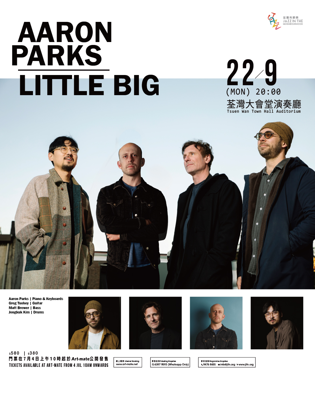 這一次,Aaron Parks 率「Little Big」即將在香港帶來一場絕無僅有的音樂盛會。在這裡,你不僅能親臨現場見證 Aaron Parks 與樂隊成員默契無間的演奏,更能近距離體驗這位當代爵士音樂先驅最前衛的創新魅力!