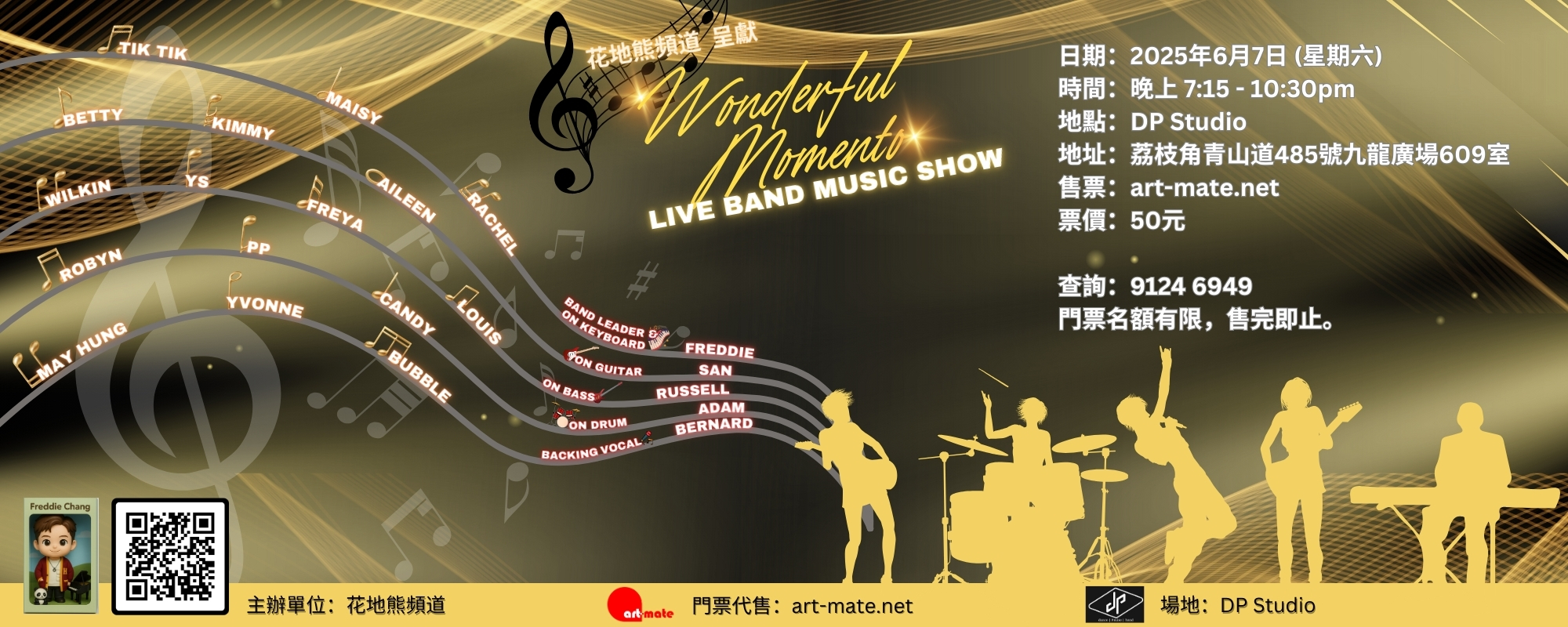 Freddie老師率領十多位熱愛唱歌嘅學生,為觀眾帶嚟好多佢哋喜歡嘅歌曲。今次嘅音樂會,更會以現場樂隊 ( Live Band )及和音伴奏,希望為大家帶嚟精彩演出!