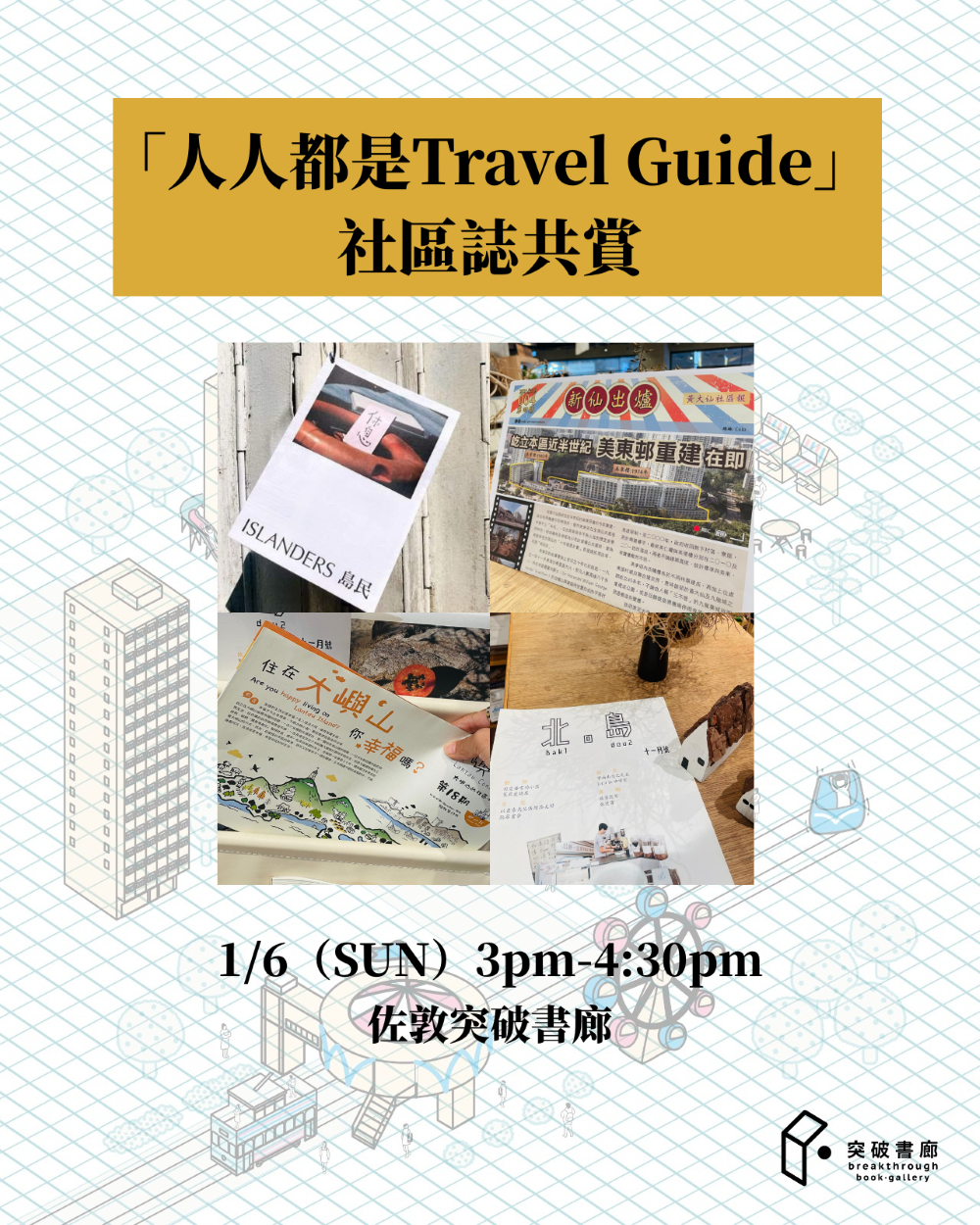 「社區報」的概念早已在70年代不同地區盛行,後來逐漸演變出不同主題,甚至設計感更強的雜誌形式。走進佐敦突破書廊,來聽聽《Islanders 島民》的製作故事,最初由坪洲地方誌發展成為可以在8個不同國家找到的小誌,它們又是怎樣記錄和影響社區?