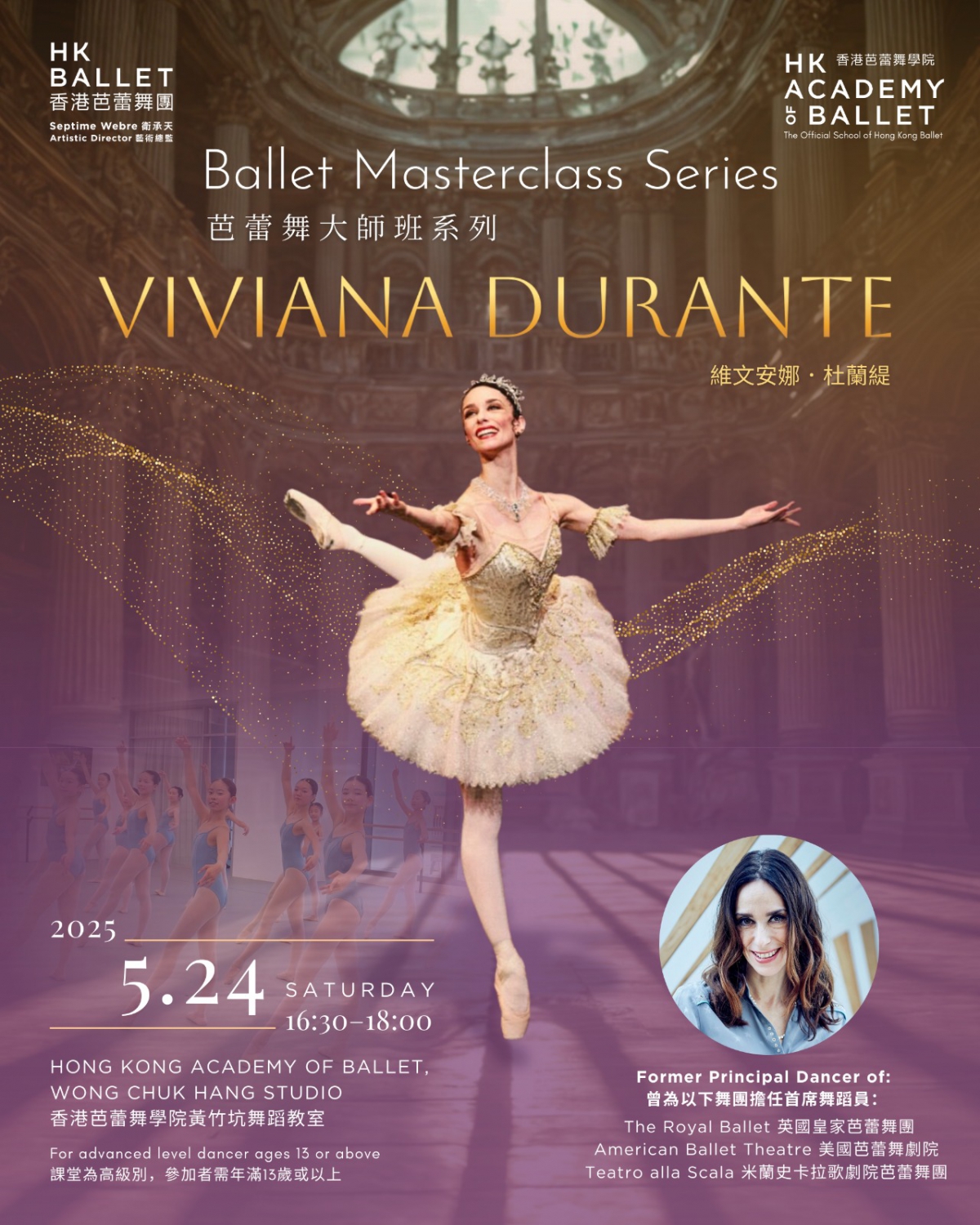 前英國皇家芭蕾舞團首席舞蹈員維文安娜.杜蘭緹,將於5月24日在香港芭蕾舞學院舉行大師班,指導本地芭蕾愛好者,並與粉絲近距離交流。她同時擔任港芭全新製作《吉賽爾》的客席導師,這位享譽國際的舞星曾演繹無數經典角色,並於全球頂尖舞團擔任客席導師。是次大師班,維文安娜將以精湛的技巧及對舞蹈的熱情,為參加者帶來難忘的學習體驗。機會難得,立即報名!