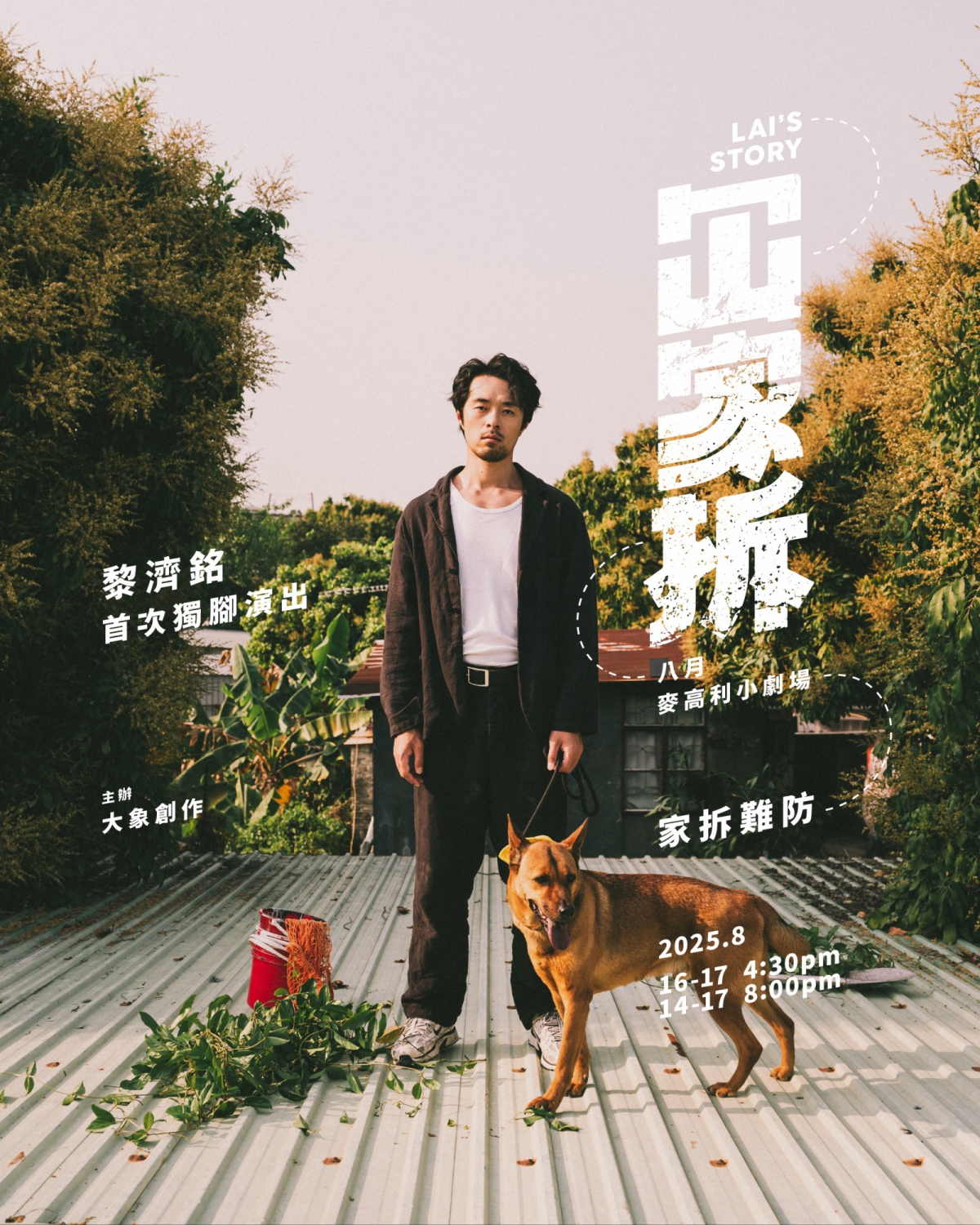 黎濟銘首次獨腳演出「你清理我屋企,我清算我自己。」田心新村的一間寮屋,承載著黎氏三代人的記憶。面臨政府收地,他選擇積極配合,並展開了一段家族歷史的探索旅程。八月-麥高利小劇場-家拆難防