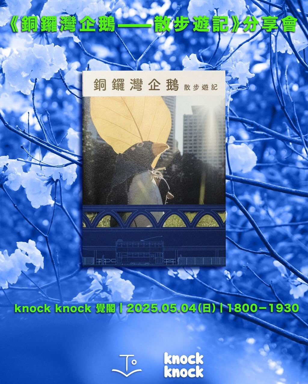 企鵝上年出咗著作《銅鑼灣企鵝——散步遊記》之後,一直心心念念,想喺唔同友好書店度巡迴分享,分享更多銅鑼灣豐富的人文地景!今次機會終於嚟啦飛雲~鵝將會出城,去到西環 #knockknock,誠邀大家一齊參加企鵝書本分享會~