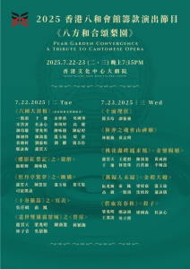 香港八和會館謹定於2025年7月22及23日,舉行籌款演出《八方和合頌梨園》。本次活動將由龍貫天主席聯同一眾老倌及新進,呈獻經典例戲《六國大封相》及多齣精彩折子戲,旨在為觀眾帶來精彩演出以弘揚粵劇文化,更為會館長期以來維護業界利益與推廣粵劇文化的工作籌募經費。
