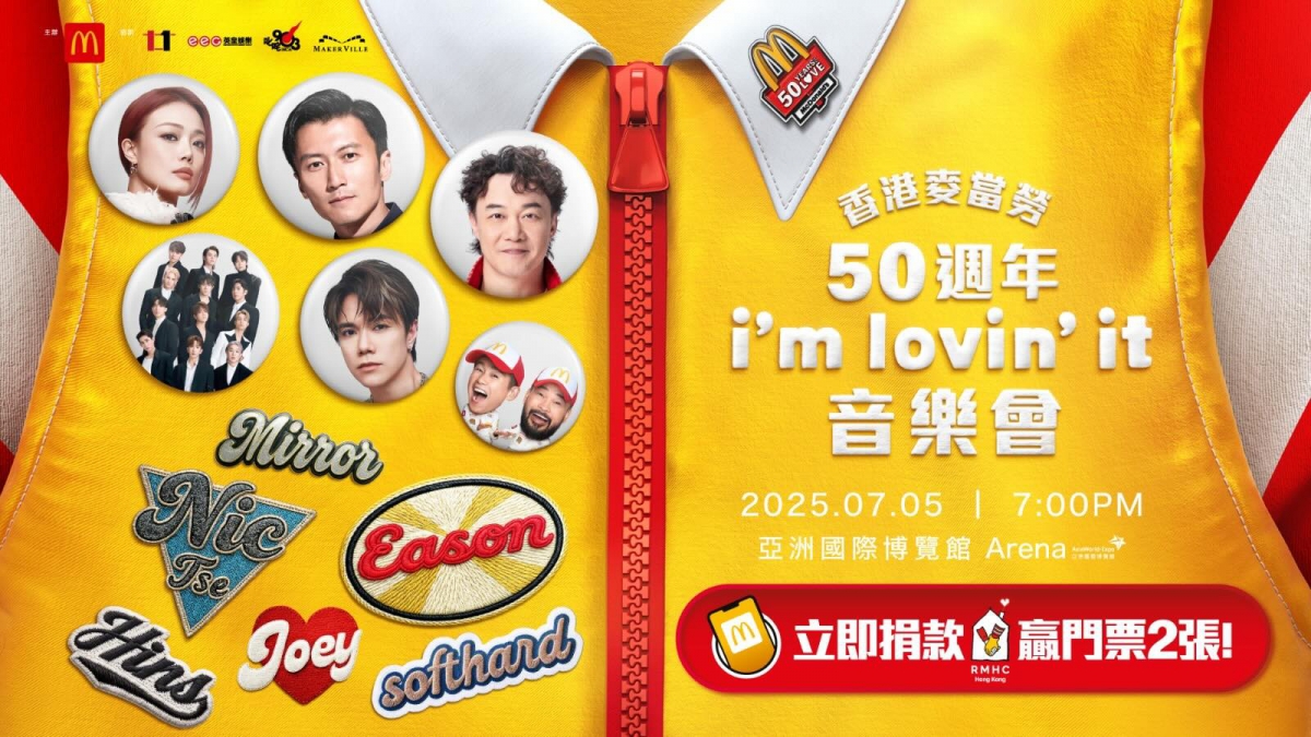 【最強陣容音樂會慶祝香港麥當勞50週年麥當勞App獨家福利有機會贏取門票2張】