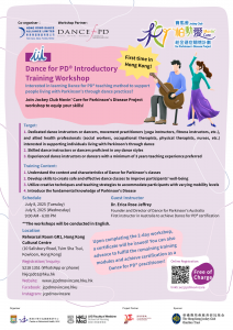 賽馬會「柏動愛」柏金遜症關懷計劃現誠邀關心柏金遜症患者(柏友)之舞蹈教師參與培訓,加入與柏友共舞之行列。