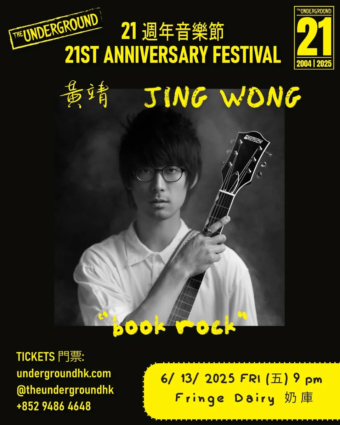 新消息!黃靖 (Jing Wong) 會喺6月13號我哋21週年音樂節登場!佢話「夜鶯都會咬人!」準備好畀佢獨特嘅「Book Rock書搖」感動!呢位本地唱作人兼劇場人,玩過Clockenflap同多個國際音樂節,首首歌都好有故事同感情。記住9點喺Fringe Dairy台睇佢solo show,千祈唔好錯過!