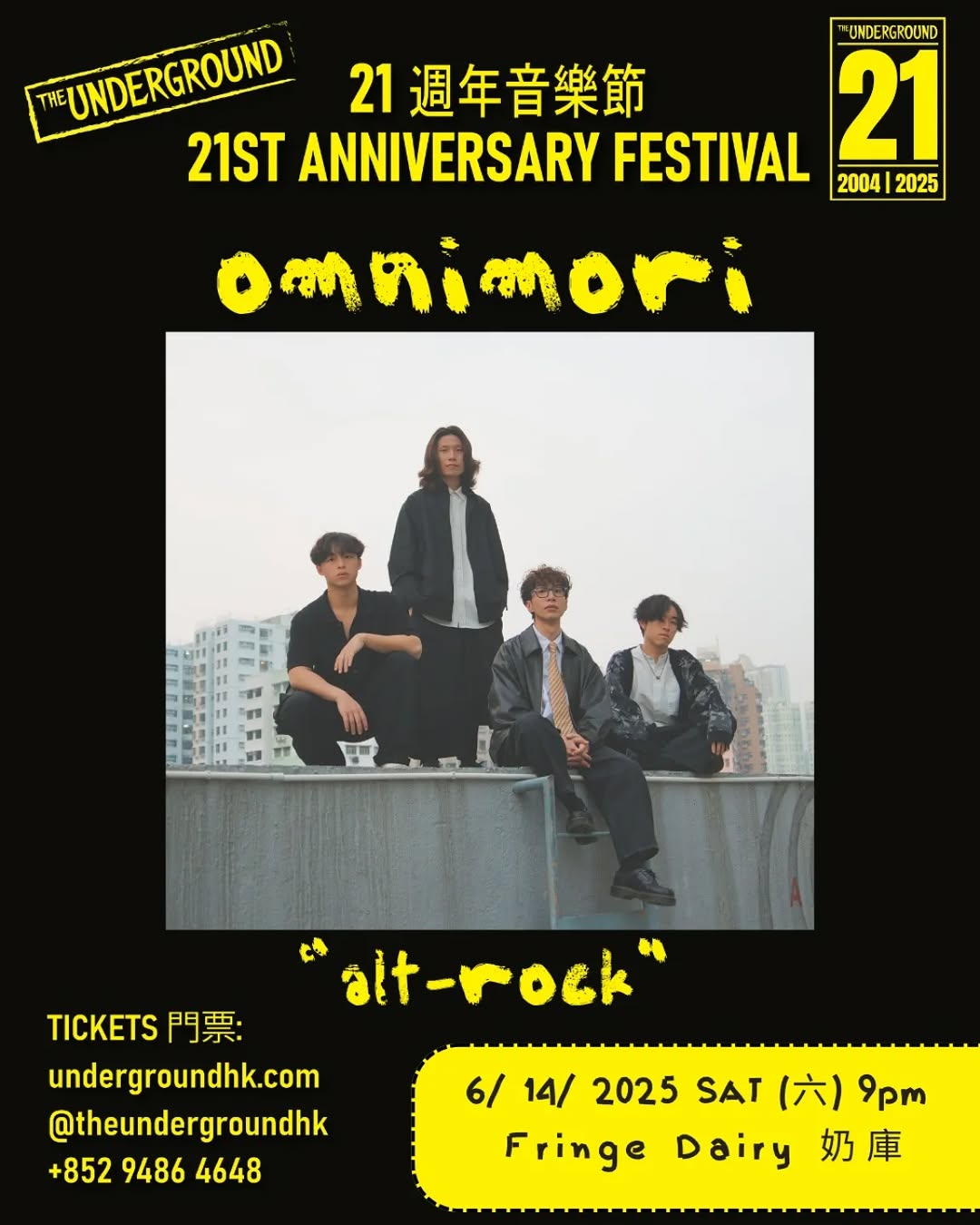 如果你錯過咗omnimori今年頭喺Sonic Showcase嘅迷人現場,今次終於有機會親身感受佢哋嘅音樂魅力啦!6月14號(星期六)晚9點,omnimori會喺The Underground 21週年音樂節登場,準備帶大家入去佢哋充滿reverb、夢幻同grunge元素嘅音樂世界。記住唔好走寶,齊齊嚟感受下佢哋點樣用聲音講青春同城市嘅故事!