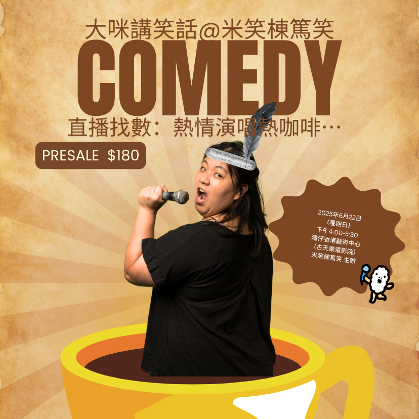 「老爺!生果金唔係用嚟買生果」但係你嘅娛樂費係可以睇棟篤笑㗎!由新進棟篤表演者大咪用心打造親子關係特色笑話、過程中加入即興喜劇及相聲元素,由大米粉絲要求熱唱曲目熱咖啡,六月22一齊嚟放鬆自己個腦啦。同日下午2:15更有由新進網紅塵本本帶另一種米笑成員,棟篤笑拼盤節目。一同來笑到有腹肌。