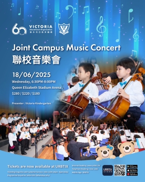 維多利亞教育機構(「 VEO」)將舉行鑽禧聯校音樂會,讓聯校合唱團及聯校弦樂團一同表演。來自八所校舍的90位表演學生自去年10月起參與VEO 聯校音樂資優計劃,經過專業培訓,將在音樂會上呈現他們在音樂旅程中的成長。