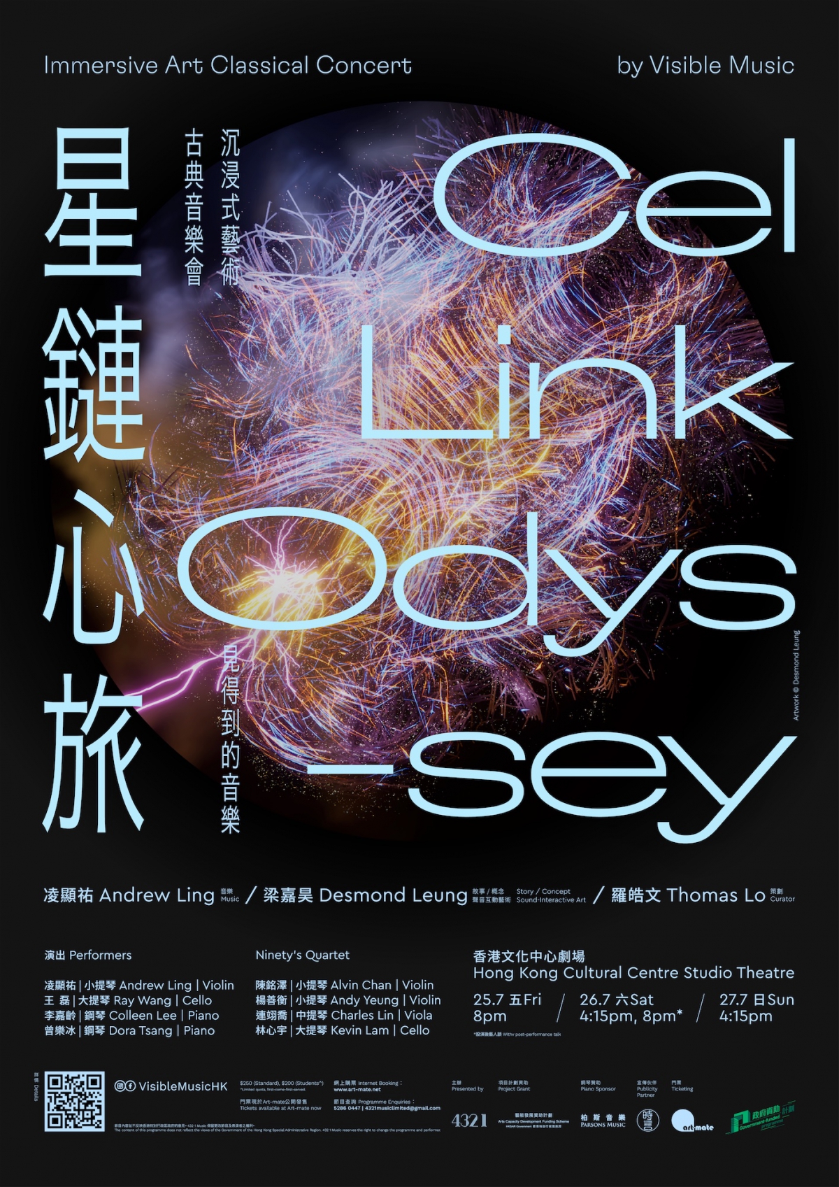 《見得到的音樂:星鏈心旅》由432 1 Music主辦,羅皓文(策劃)、凌顯祐(音樂)及梁嘉昊(故事/ 概念/ 互動視覺藝術)聯手呈獻。作品以「星鏈」為核心,象徵天體與細胞之間微妙而深遠的連結。星辰運行的宏觀節奏,與人體內在的微觀智慧相互呼應。作為《見得到的音樂.觸得到的音符》計畫的最終章,《星鏈心旅》將科學、想像與靈性合而為一,開展一場橫跨內在與宇宙的聲音旅程。