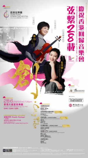 香港弦樂團一直以敢「創」敢「闖」的精神,銳意開拓古典音樂的界限,通過弦樂的多元表達,獲得「中西結合的香港樂聲」美譽。為慶祝香港回歸28周年,藝術總監、小提琴家姚珏領銜香港弦樂團攜手上海交響樂團駐團指揮張潔敏聯袂呈獻《弦繫28載 - 創・City Pulse》音樂會。