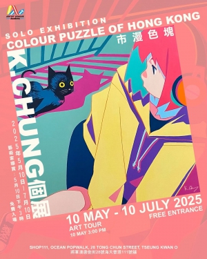 藝術家K.Chung在《市漫色塊》中透過畫布呈現出香港的林林總總。小城少女引領觀眾穿梭的是對香港的印象、回憶、以致情感。本系列的作品以漫畫化的香港作主調,分享畫師兒時源於漫畫中的快樂與憧憬。這次展覽的新作有別於他以往的風格,新作活用簡約的圖像及鮮明的上色,以色塊拼貼出屬於其眼中的香港。