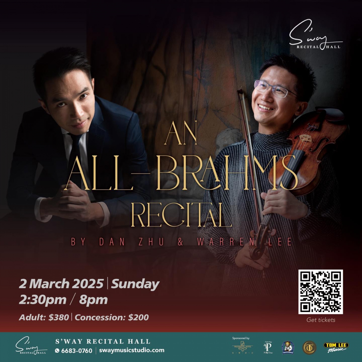 享譽國際舞台的小提琴家朱丹,攜手施坦威藝術家李偉安,詮釋布拉姆斯創作心靈中未曾言說的低語,讓小提琴與鋼琴交織成不可分割的聲音,從最燦爛的歡欣巔峰直抵最深沉的渴望谷底。這場橫跨三首奏鳴曲的音樂之旅,將完整展現布拉姆斯情感世界的全貌——從寧靜的內省到磅礴的激情,從感傷的嘆息到光輝的讚歌。難得一見的機會,見證當代兩位大師級說書人為這些經典曲目注入嶄新生命。