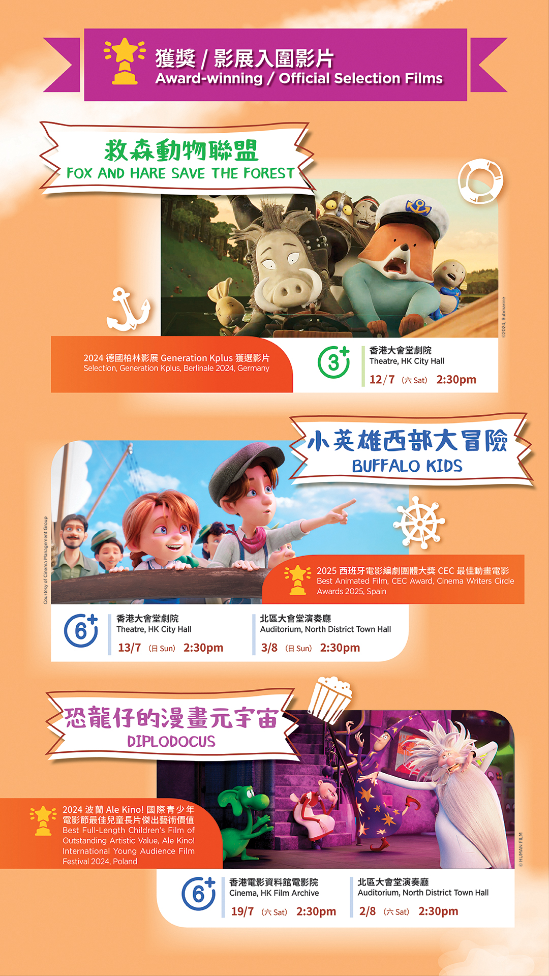 有夢想就要敢於行動,要行動最好有神隊友沿途支持,一起迎接追夢旅途上各式各樣的人、物與事。今年的「夏日親子電影節」繼續為大家搜羅世界各地的合家歡電影精品,讓大人小朋友一同走進電影世界,穿梭古今、橫渡魔幻與現世,經歷一次又一次精彩刺激又滿載親情、友情與無盡溫情的大小追夢之旅。