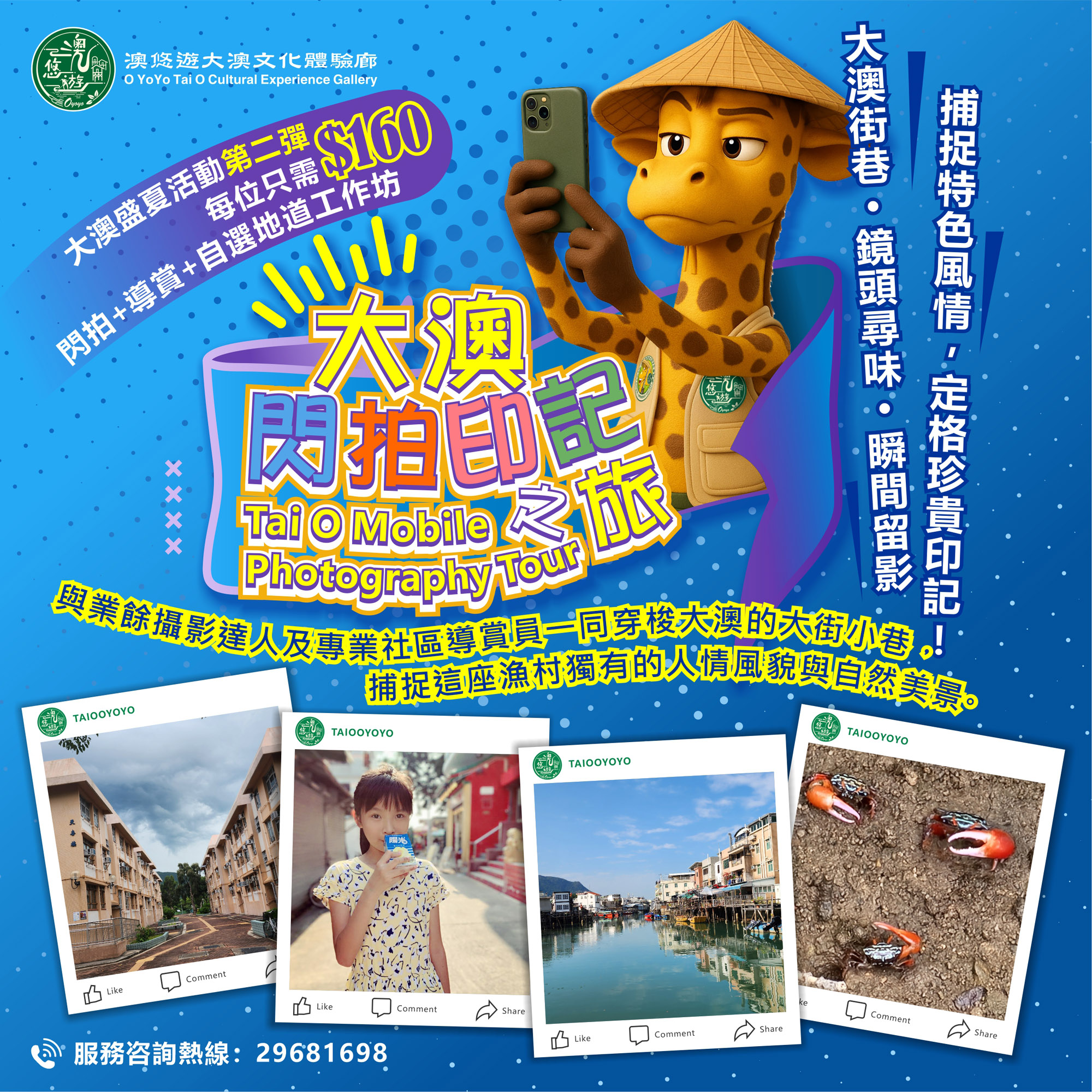 與業餘攝影達人及專業社區導賞員一同穿梭大澳的大街小巷,深入了解每個推薦閃拍景點背後的歷史文化故事,捕捉漁村獨有的人情風貌與自然美景。無論你是攝影新手或愛好者,在專業團隊帶領下,走進大澳的日常生活與歷史韻味,透過手機鏡頭留下難忘影像,記錄當下感動與故事。