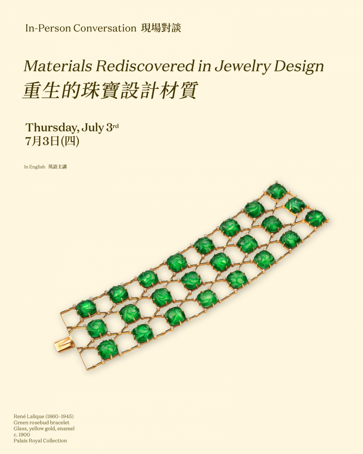 誠邀你參與現場對談,由寶石學家和珠寶設計師帶領及探索珠寶設計中的最新的創作材料。