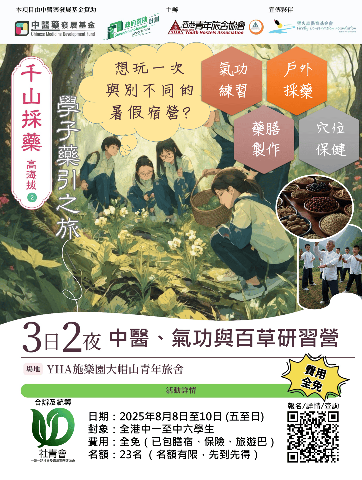 隆重介紹《千山採藥 - 學子藥引之旅》中醫、氣功與百草研習營,費用全免!畀你一個機會,探索成為中醫師嘅可能!