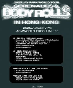 韓國男歌手Jay Park朴載範宣布舉辦世界巡迴演唱《Serenades & Body Rolls》,香港站將於7月係亞博舉行。