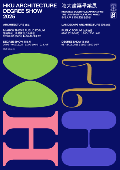 The Degree Show is an annual exhibition showcasing thesis projects produced by the Master of Architecture [MArch] and Master of Architecture (Design) [MArch(Design)] final year students. The exhibition also features works from our MArch and MArch(Design) Programs, the Bachelor of Arts in Architectural Studies [BA(AS)], the Bachelor of Arts & Sciences in Design+ [BASc(Design+)] and Research Postgraduate Program. These projects represent the students' reflection, vision and imagination of the built-environment, their concerns with the social and cultural milieus as well as their determination to engage in and design new spaces for contemporary conditions in our societies.