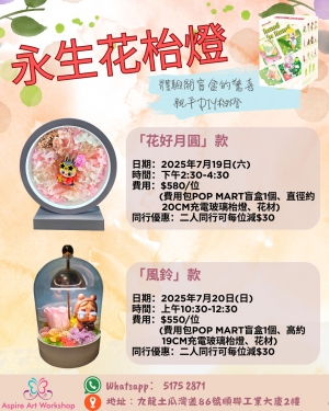 想體驗開盲盒的驚喜?想DIY整靚靚永生花?想夜晚有盞枱燈陪住你?呢個工作坊可以一次過滿足晒你快D同我地報名啦~