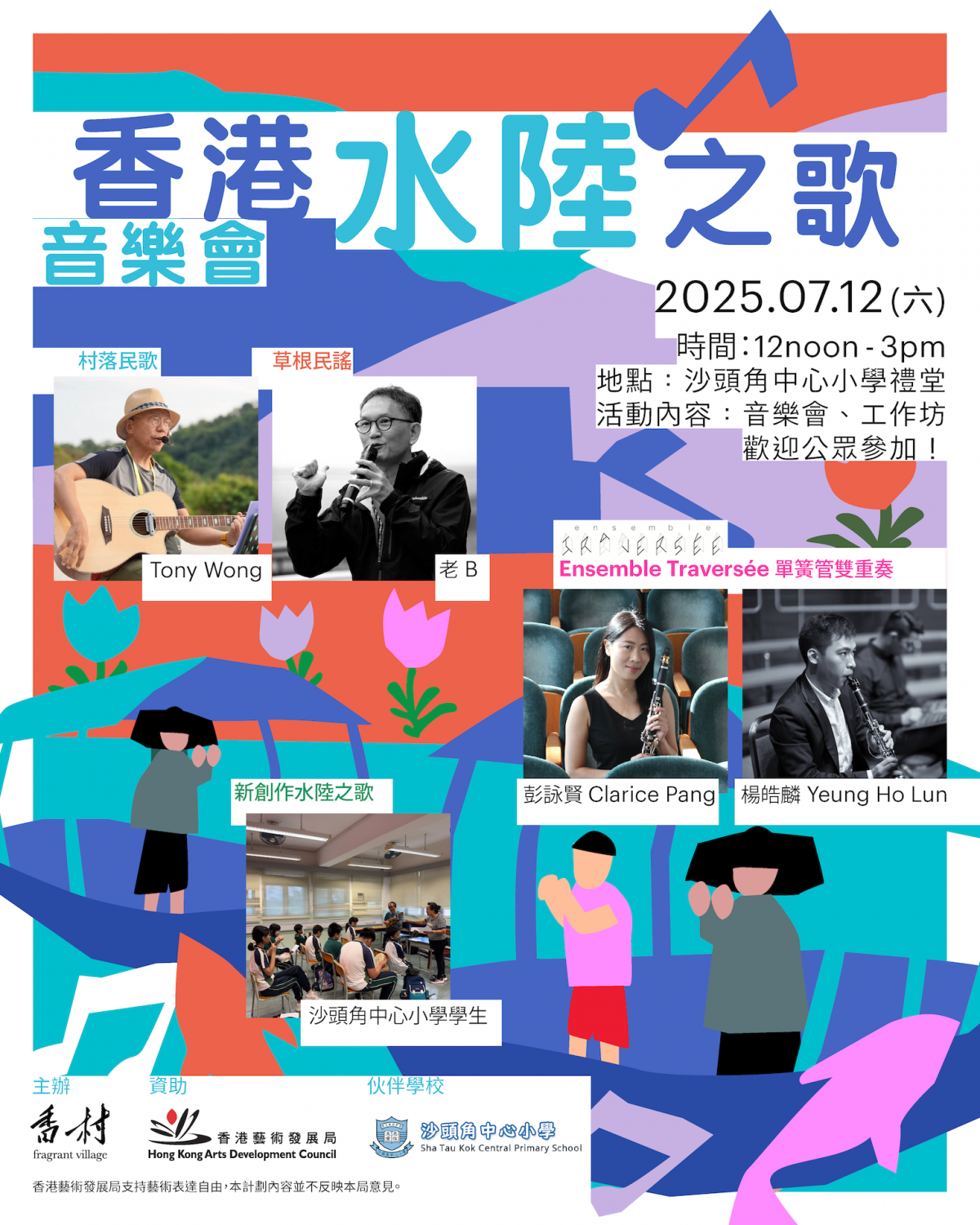 當天還邀請了本地音樂人Tony Wong和老B,分別與大家分享村落民歌和草根民謠,亦有Ensemble Traversée的兩位成員彭詠賢、楊皓麟為大家呈獻單簧管雙重奏。