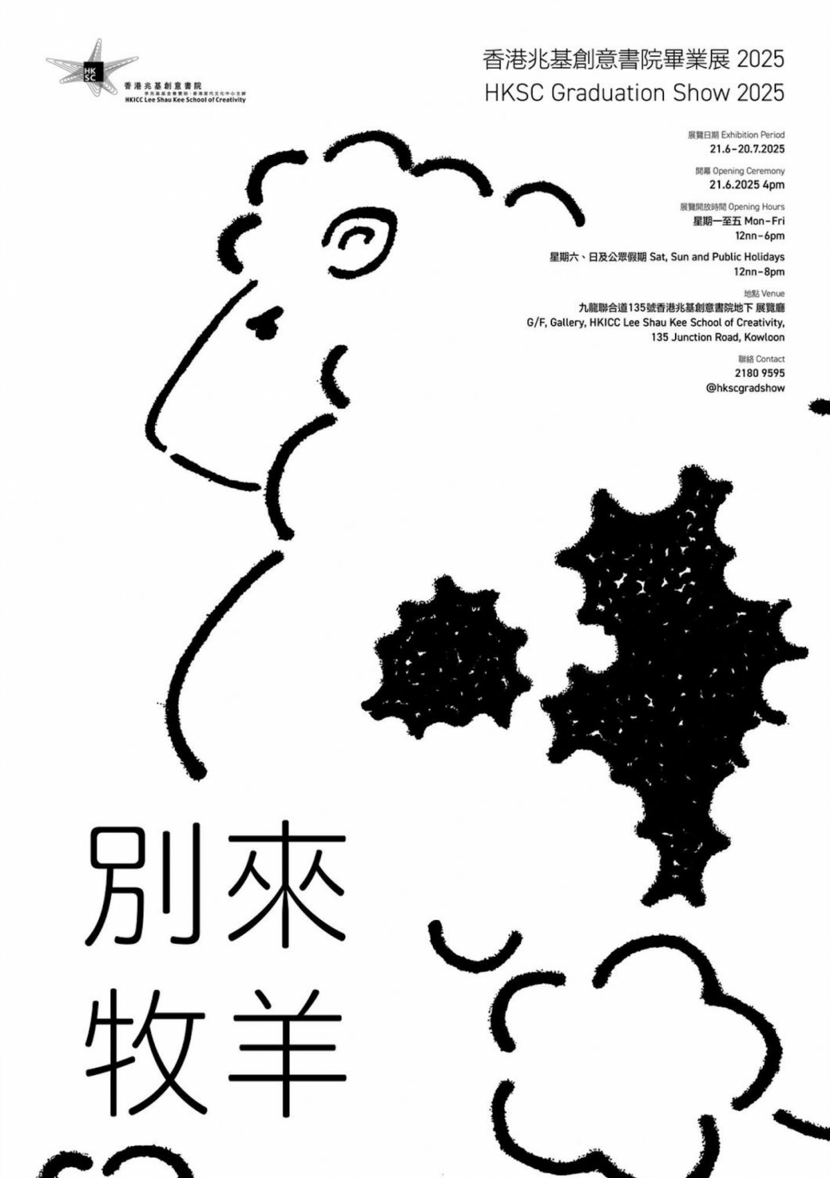 『羊群效應』指從眾,一隻羊無意識地跟隨旁邊的羊亂走,誰先動?或許牧羊人帶頭吧。羊群想像脫離牧羊人的保護與引領,自主求存,互相幫助或依賴。「咩」的叫聲,反詰世人之常態,斷然拒受控縛。是次展覽由書院應屆畢業生策劃,將透過不同媒介的作品展示他們的想法和感受,歡迎各界人士蒞臨參與,見證書院人類們三年創作學習和體驗。