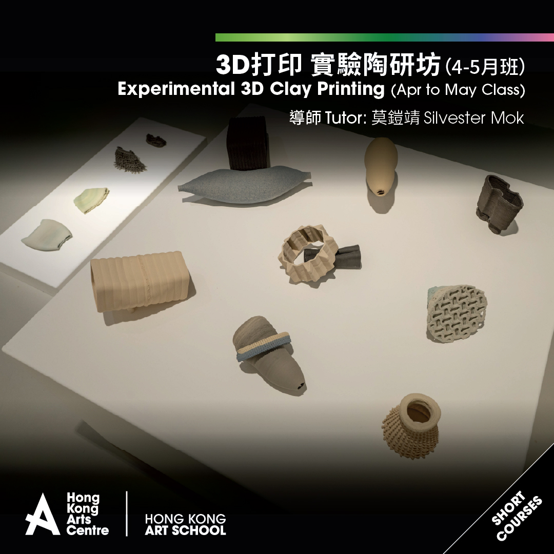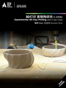 導師將教導3D打印機的基本原理、應用和運作,讓學員在電腦上設計和繪畫出3D模型,繼而用陶泥作原材料打印。導師將介紹不同手法,讓學員嘗試將打印好的作品部件加工、改良,以實驗性質發掘陶瓷3D打印的可能性,實行將科技與藝術結合,創造出獨特的陶瓷造型。此課程適合對陶藝和3D打印技術感興趣的人士,無需任何陶瓷製作經驗。
