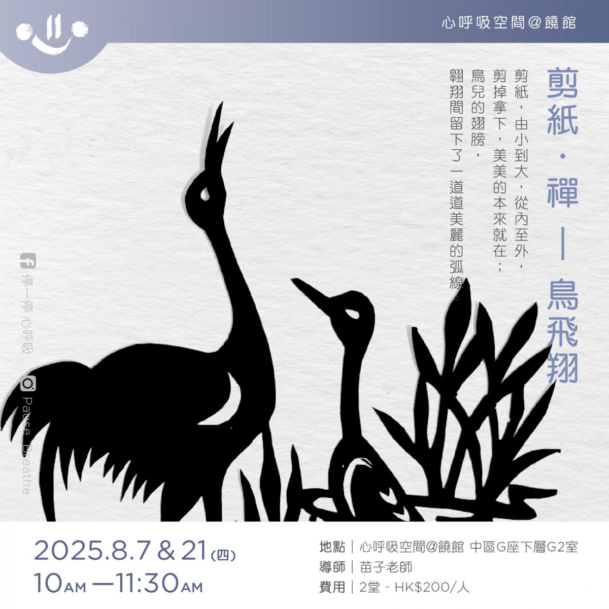 • 請穿著素色上衣及寬鬆長褲,質料以棉、麻材質較宜,以免磨擦發出聲響。